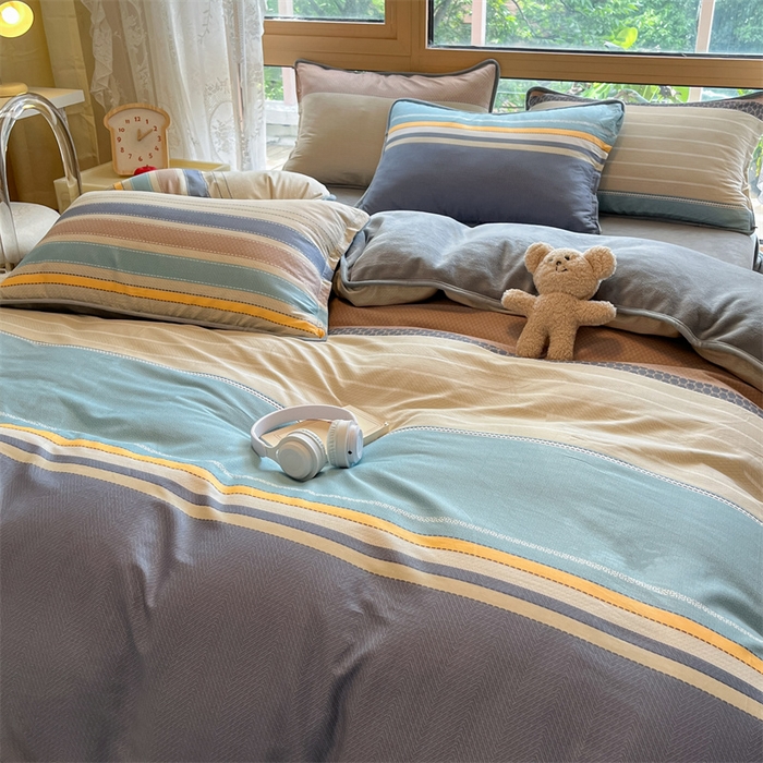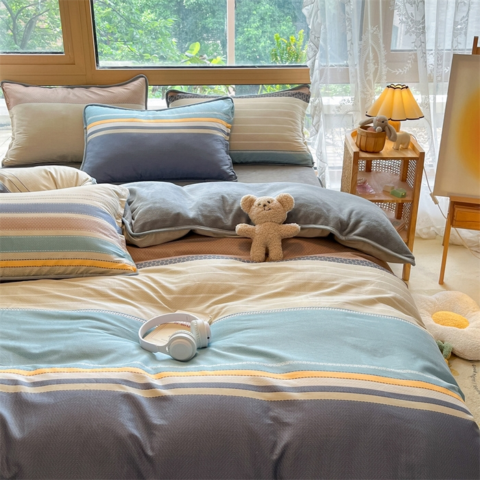 棉加牛奶绒三角针贝壳边四件套-系列一