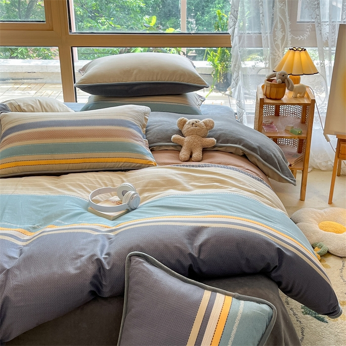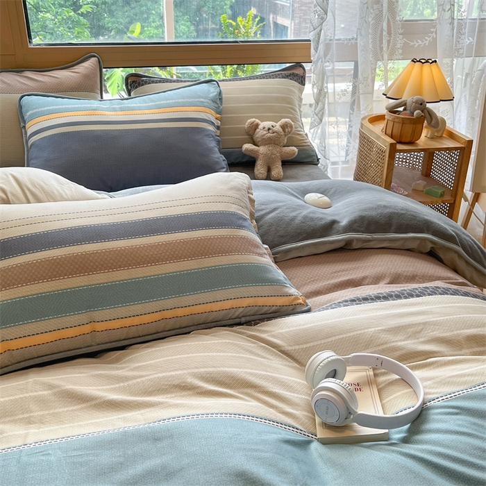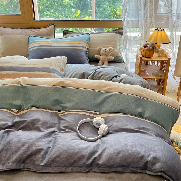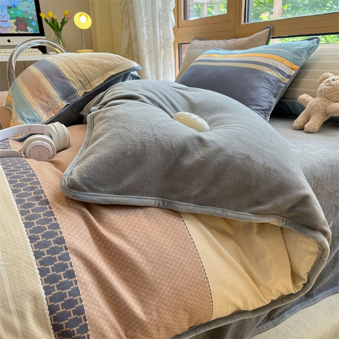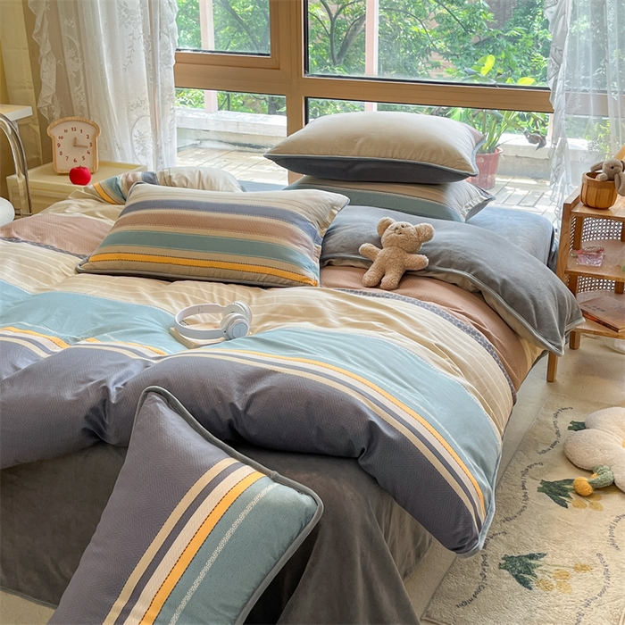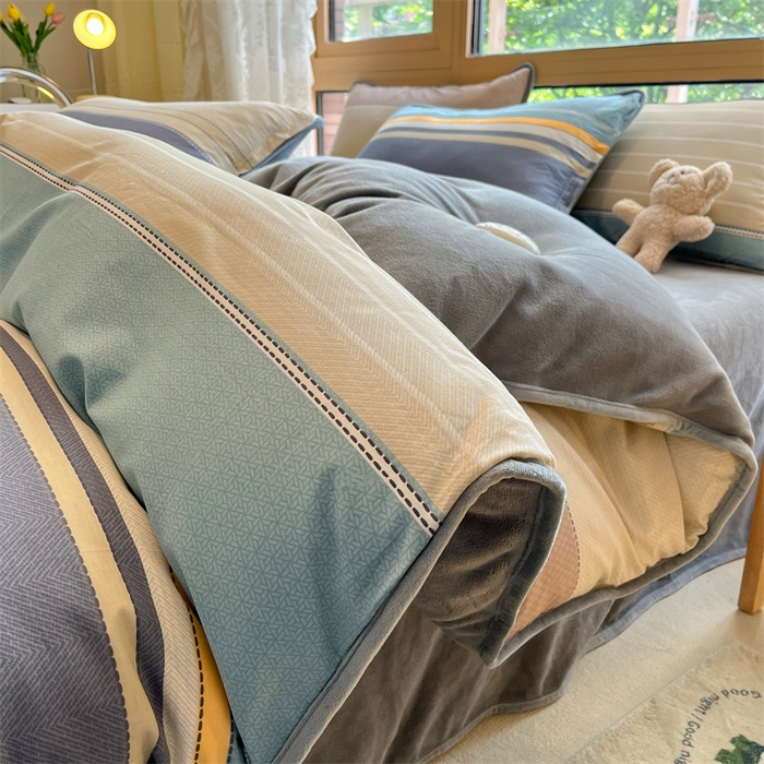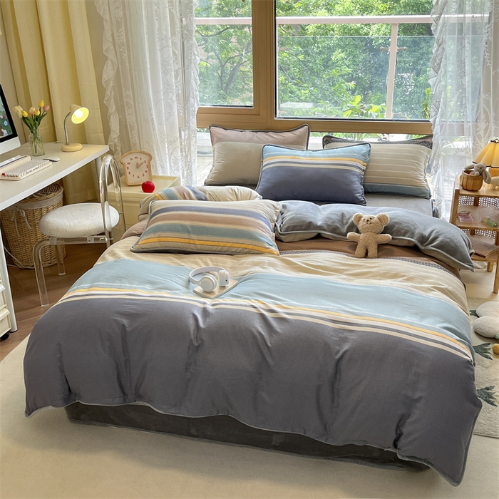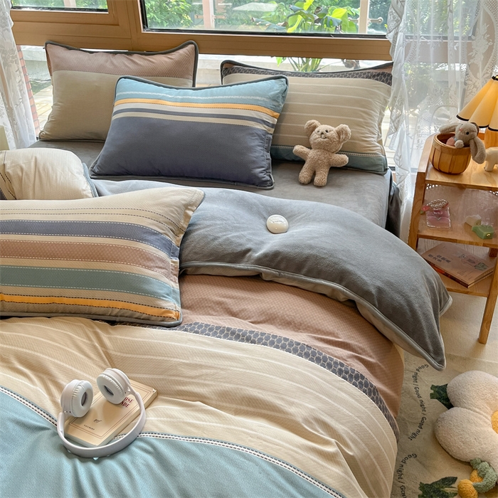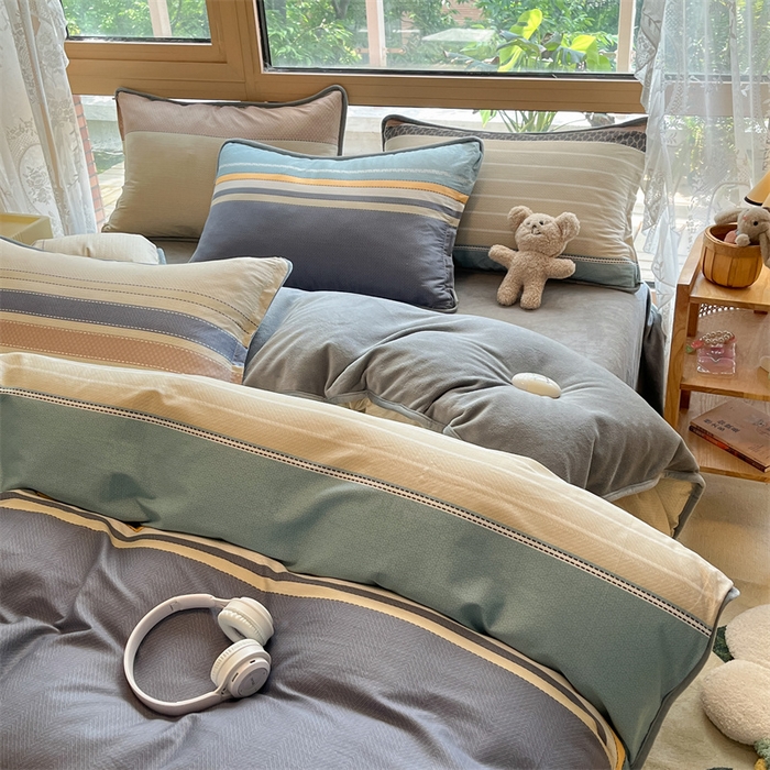 棉加牛奶绒三角针贝壳边四件套-系列一