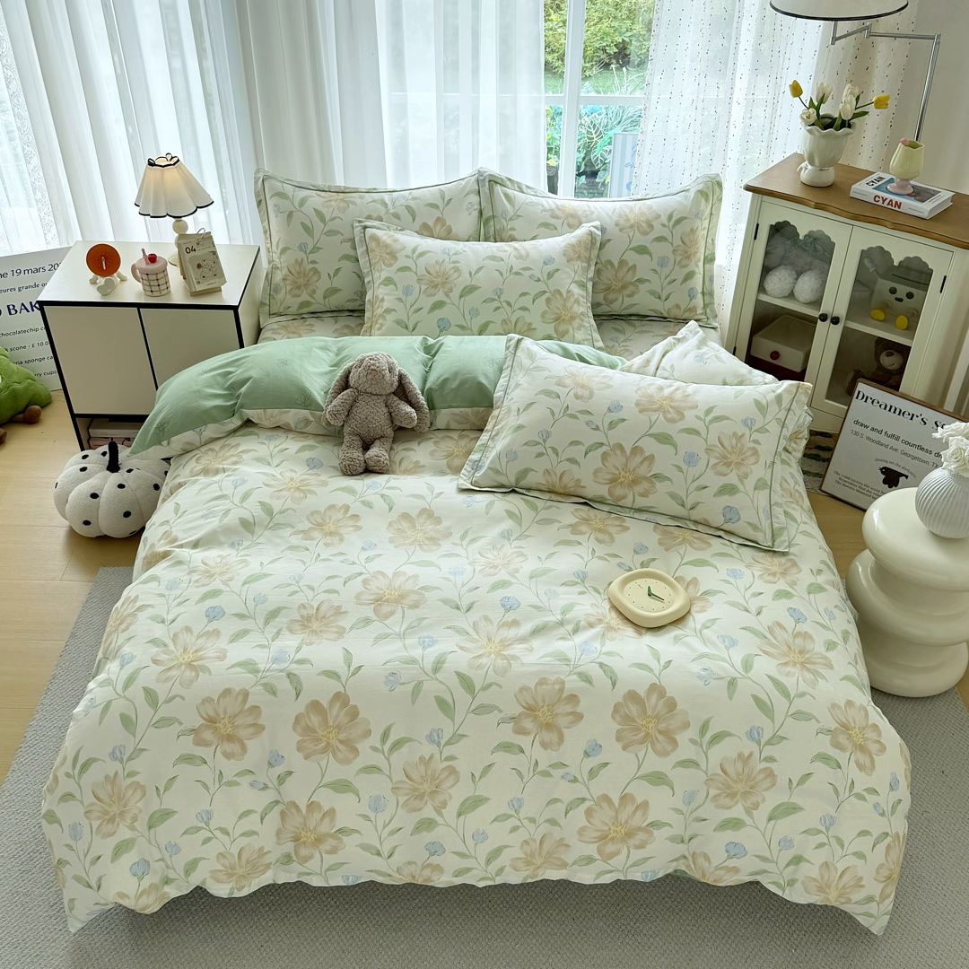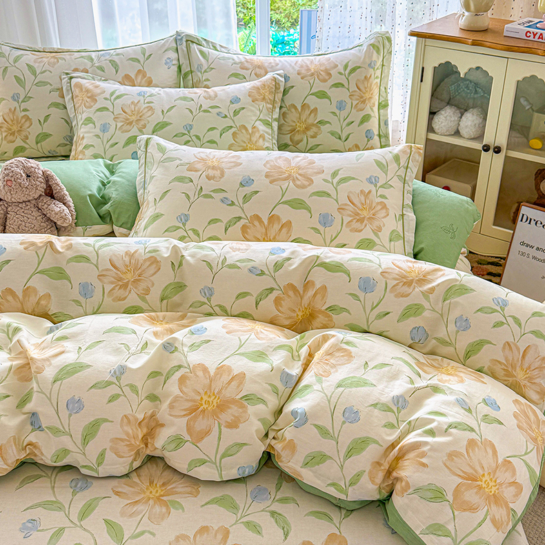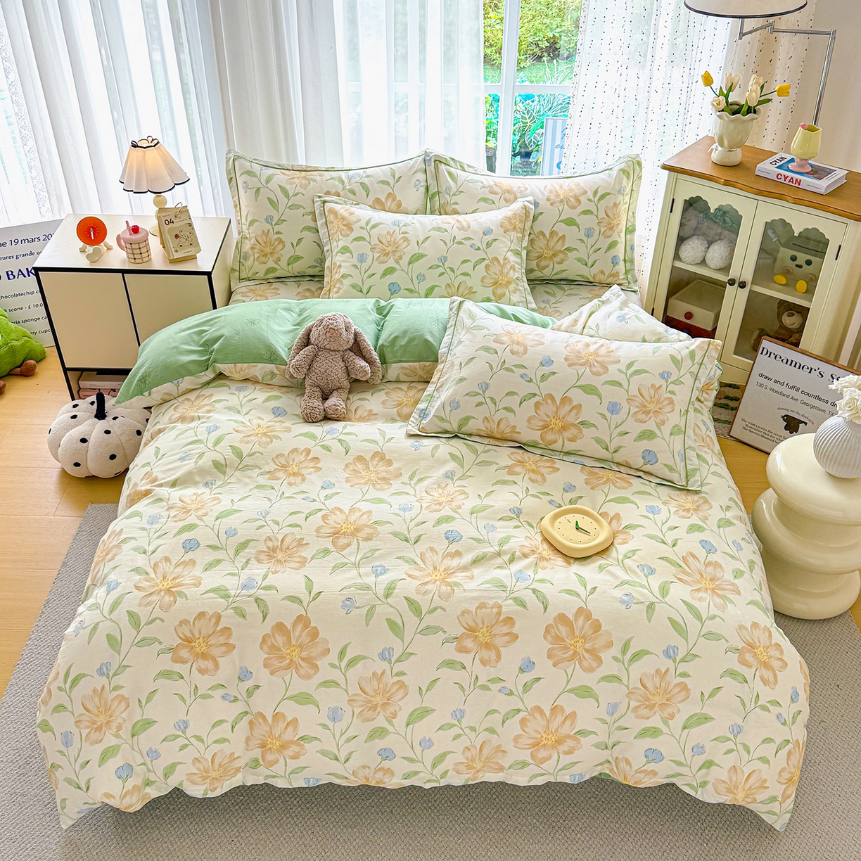 棉加牛奶绒三角针贝壳边四件套-系列一
