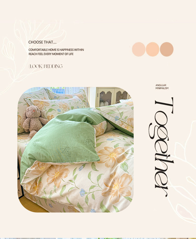 棉加牛奶绒三角针贝壳边四件套-系列二
