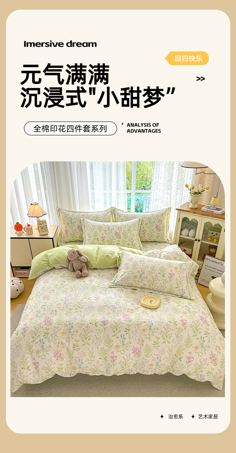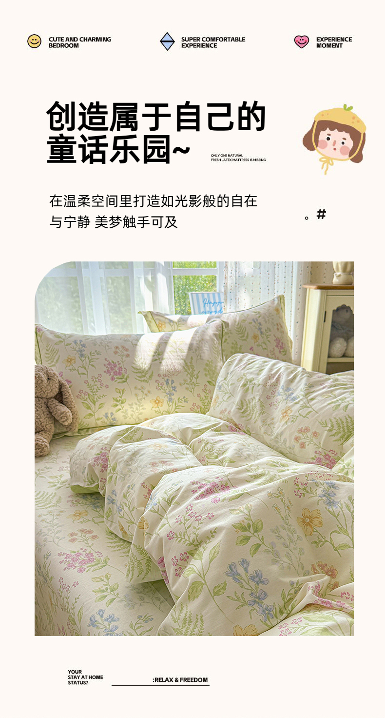 红粉佳人家纺 2025春夏新款12868纯棉单品四件套系列第二批 漫步花语
