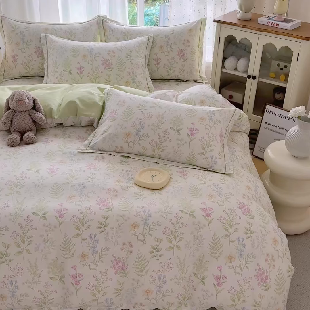 棉加牛奶绒三角针贝壳边四件套-系列一