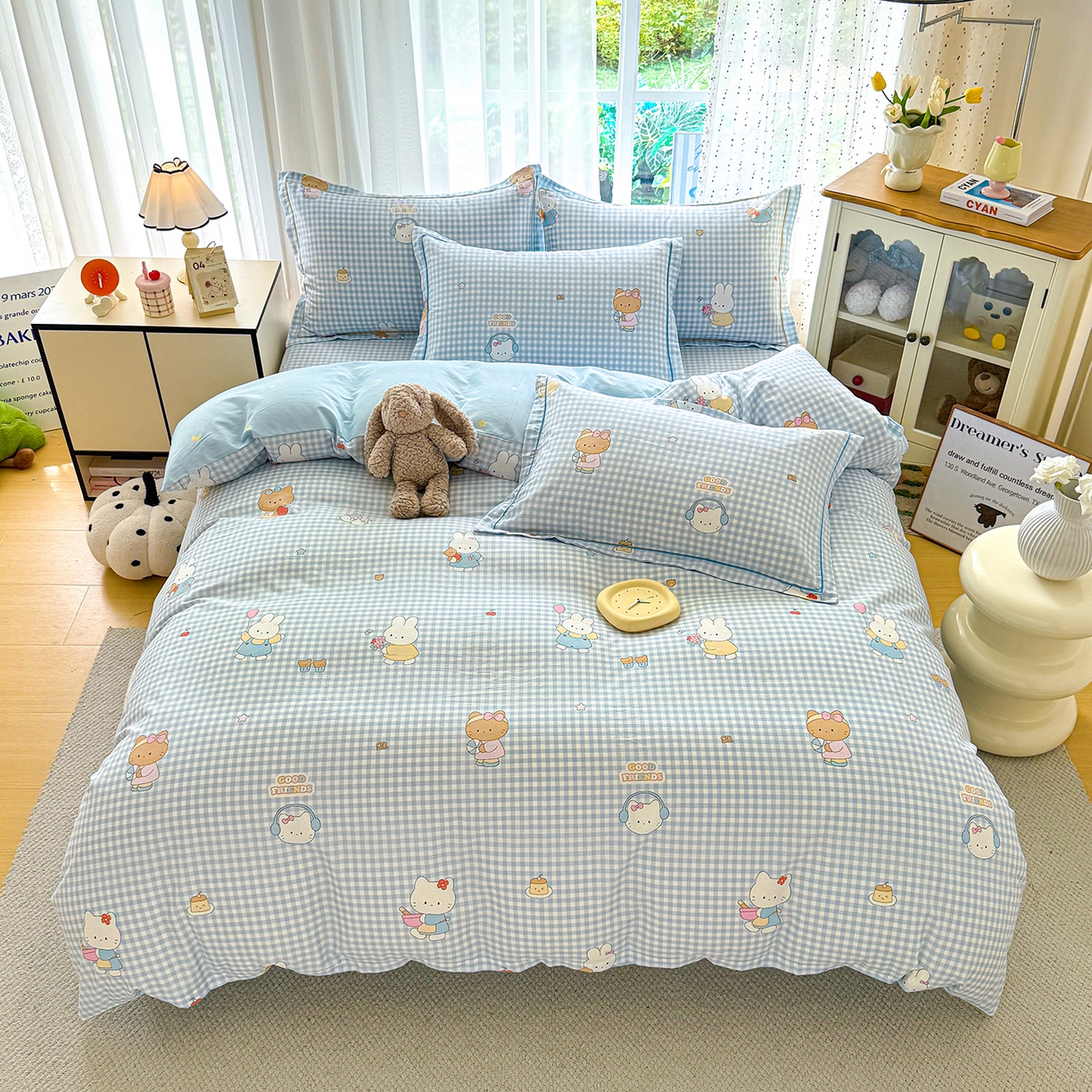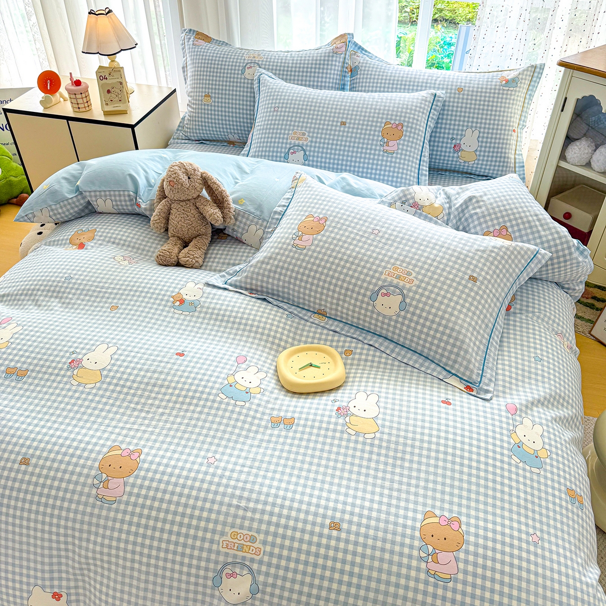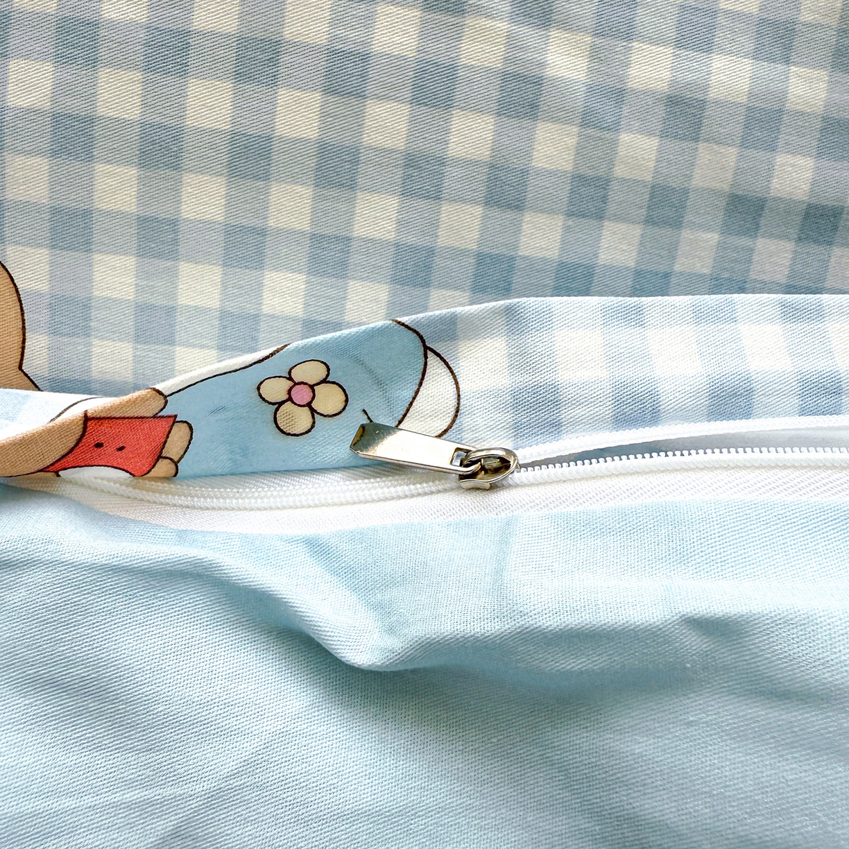 红粉佳人家纺 2025春夏新款12868喷气全棉纯棉印花单被套第二批 格子猫咪