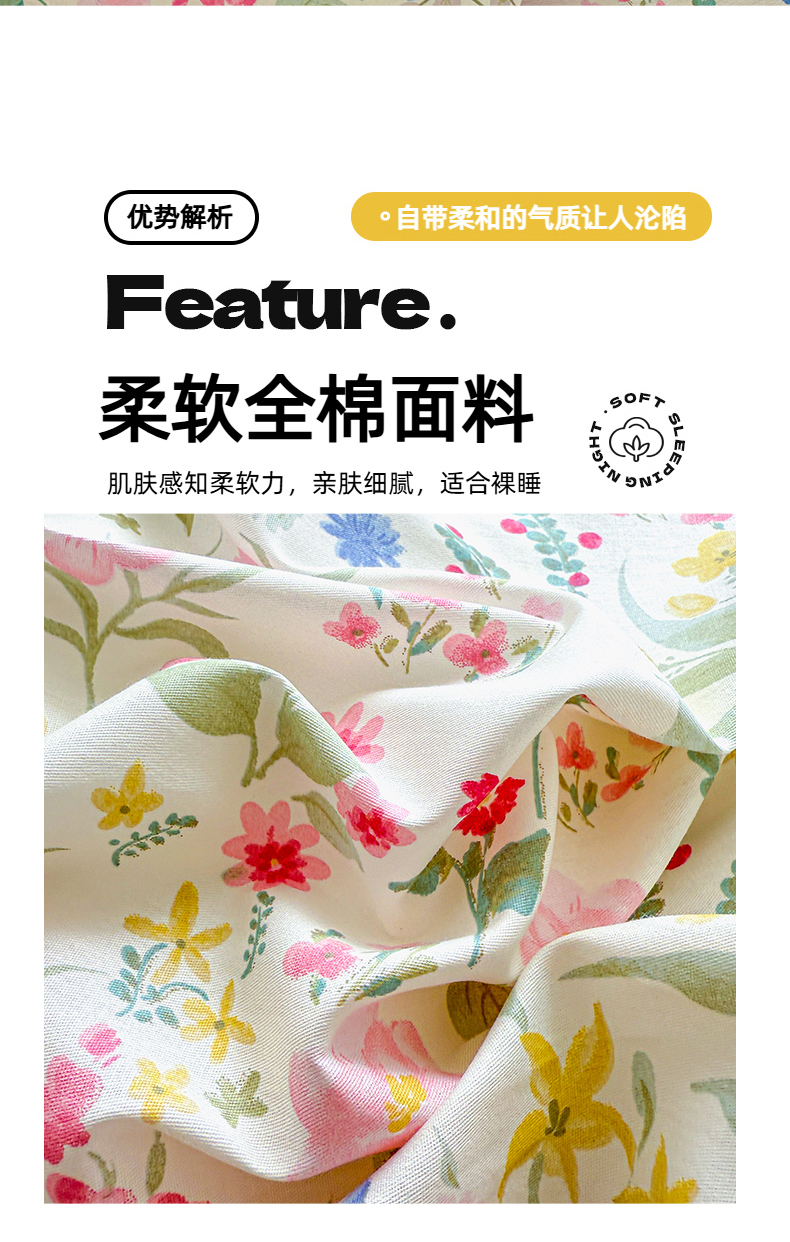 红粉佳人家纺 2025春夏新款12868喷气全棉纯棉印花单被套第二批 花香