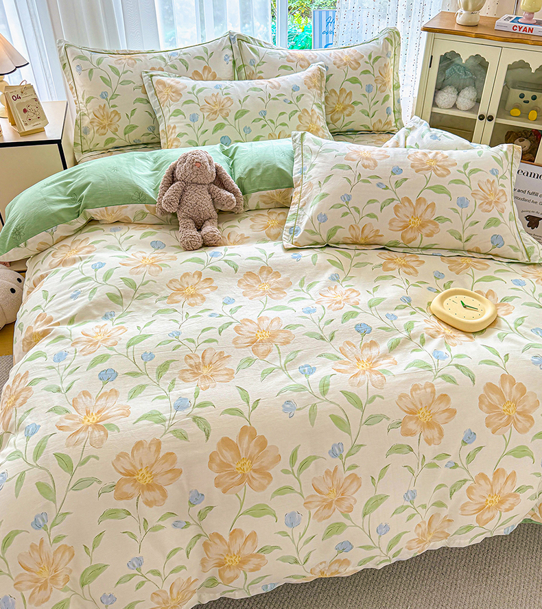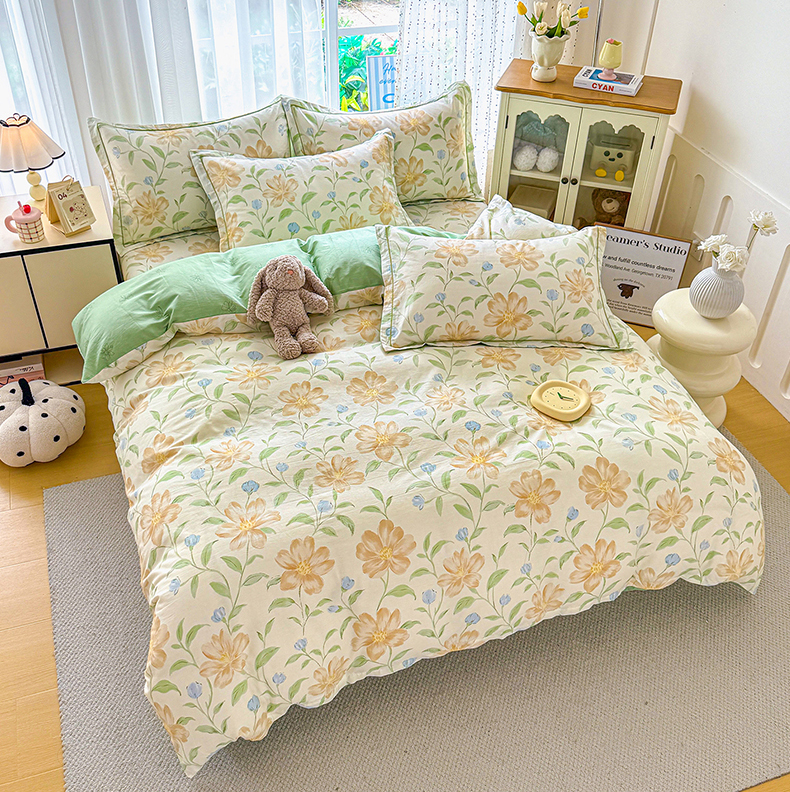 棉加牛奶绒三角针贝壳边四件套-系列二