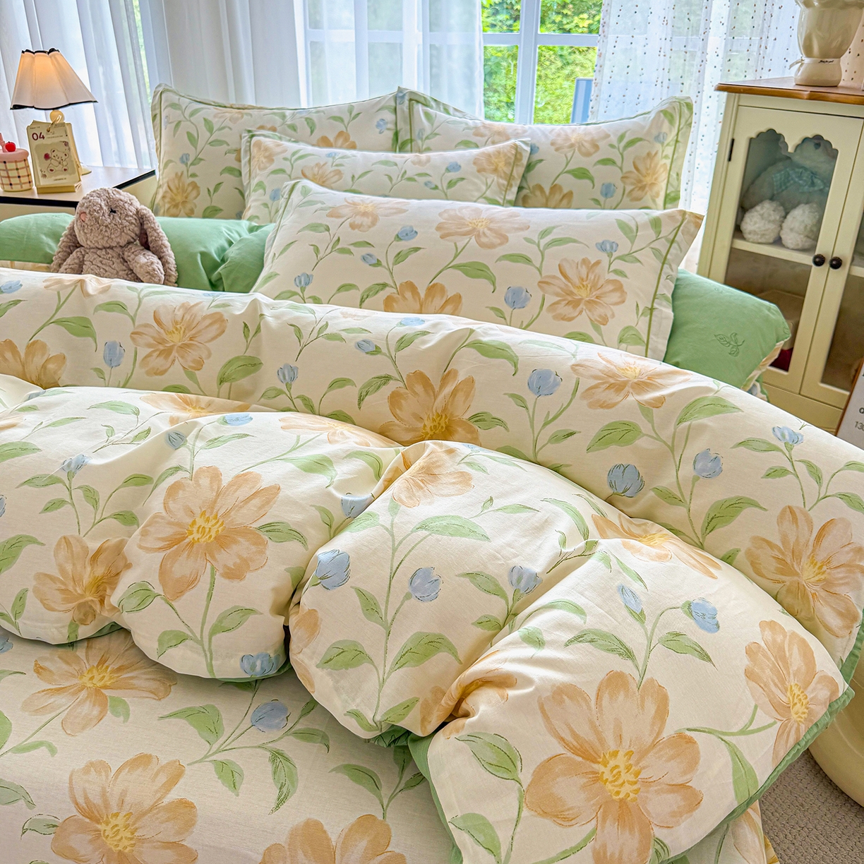 棉加牛奶绒三角针贝壳边四件套-系列一