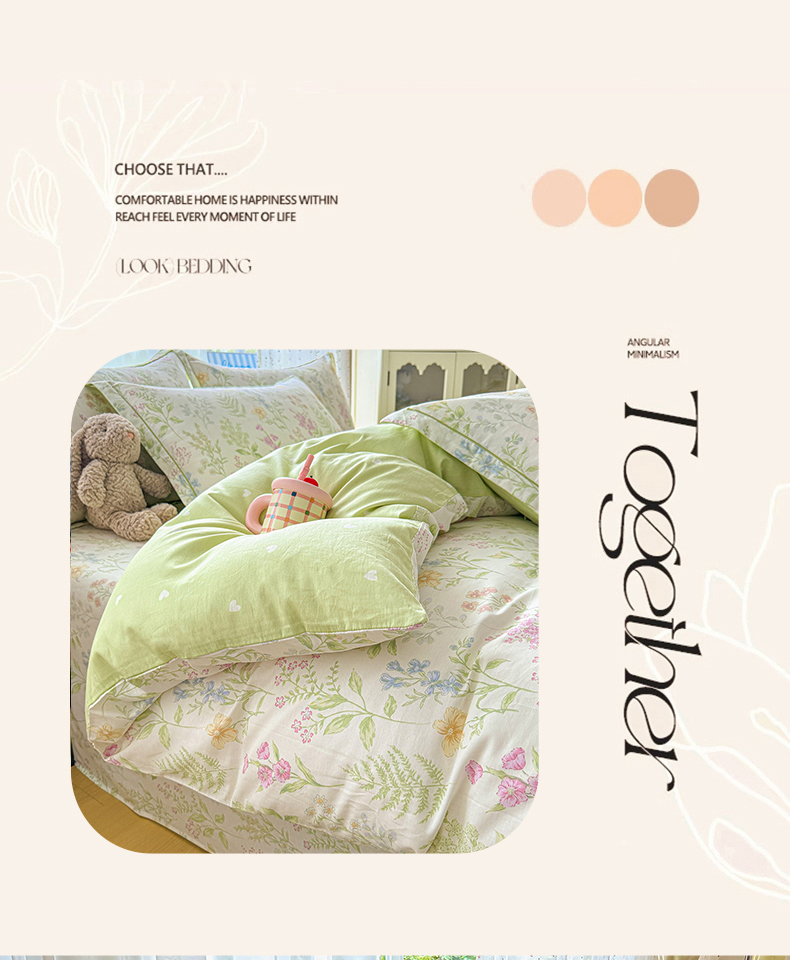 棉加牛奶绒三角针贝壳边四件套-系列二