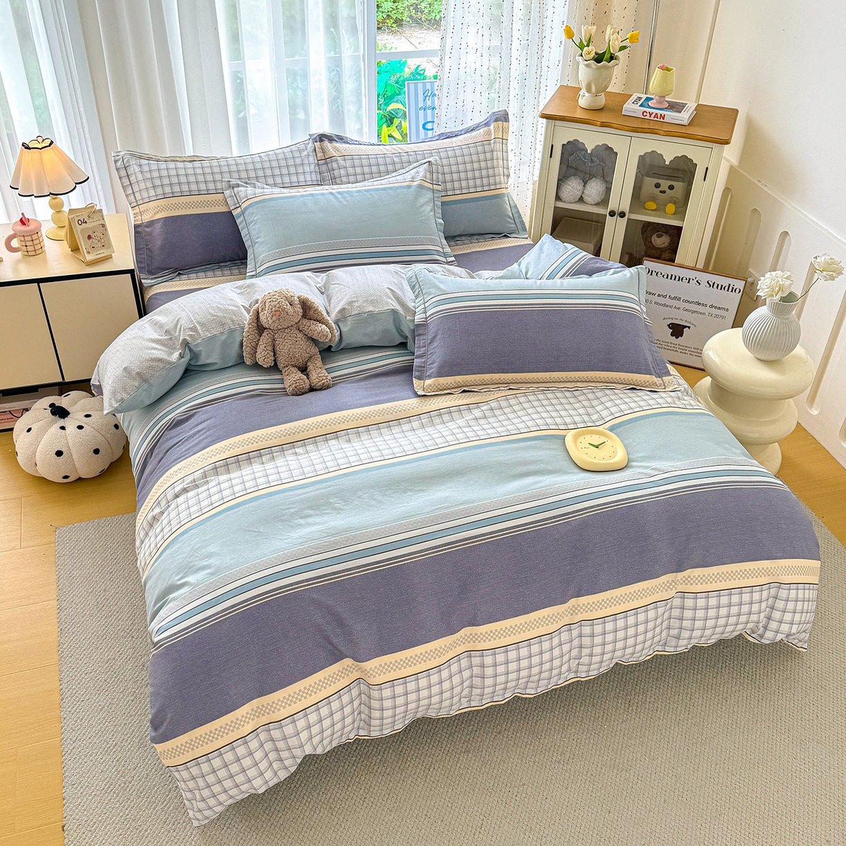 棉加牛奶绒三角针贝壳边四件套-系列一