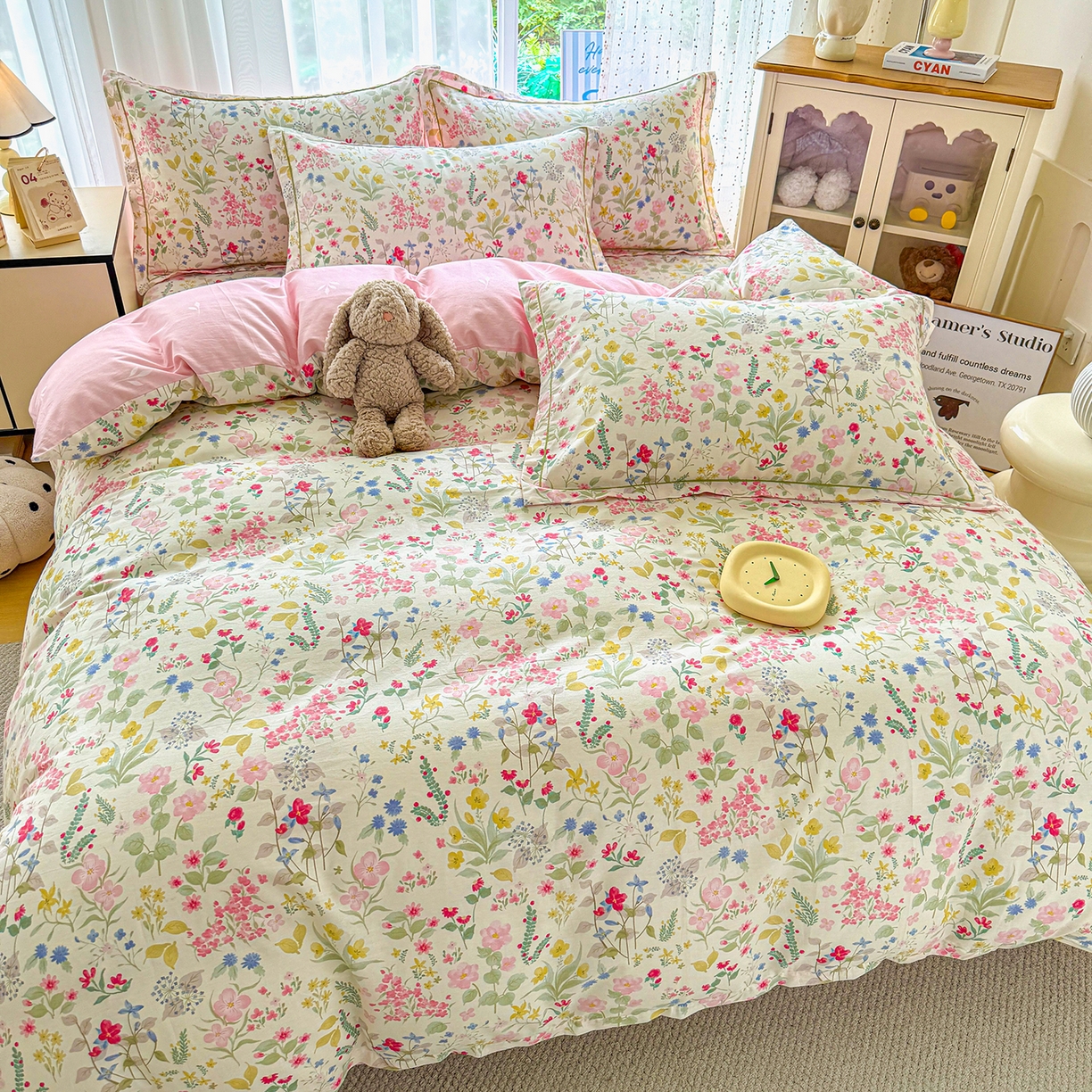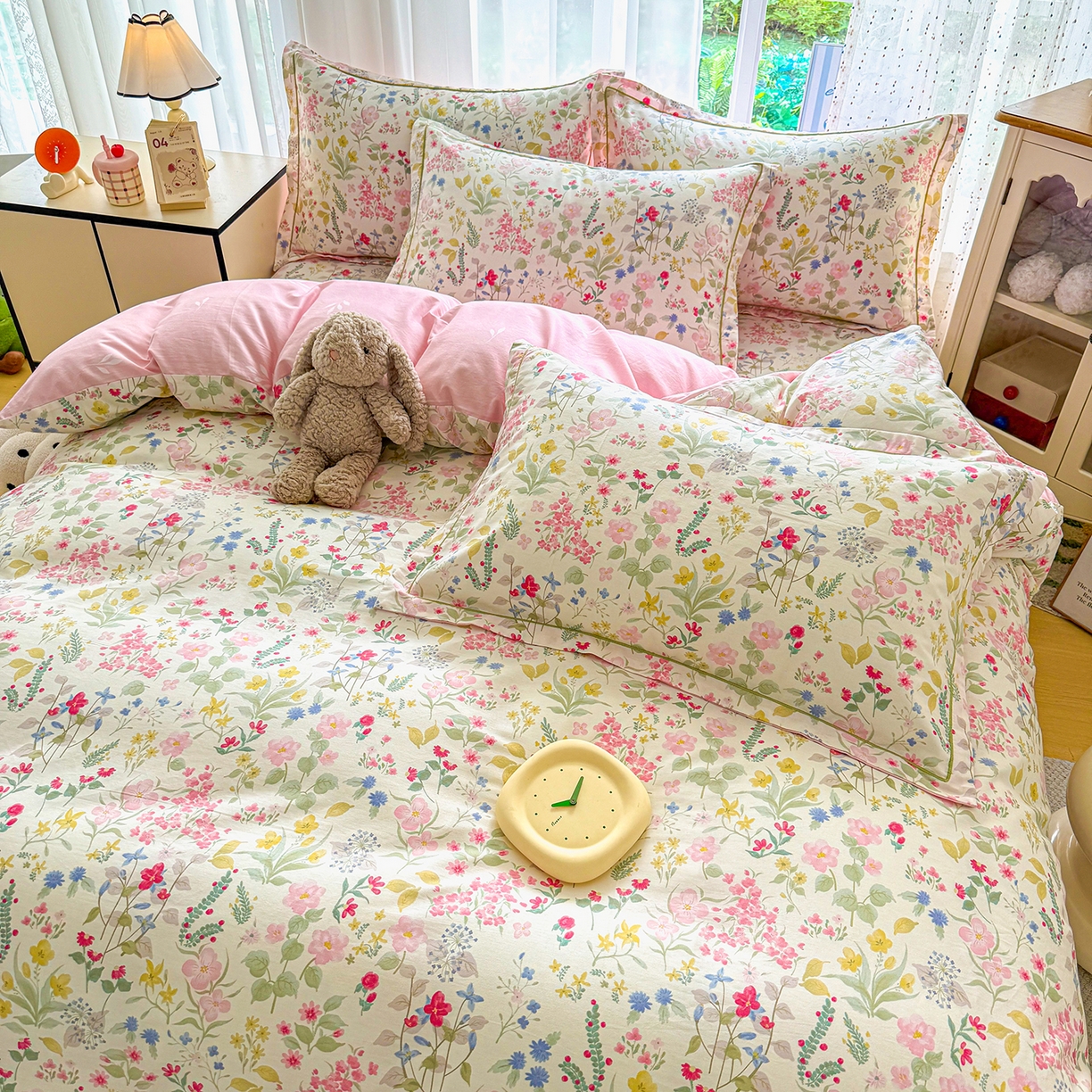 棉加牛奶绒三角针贝壳边四件套-系列一