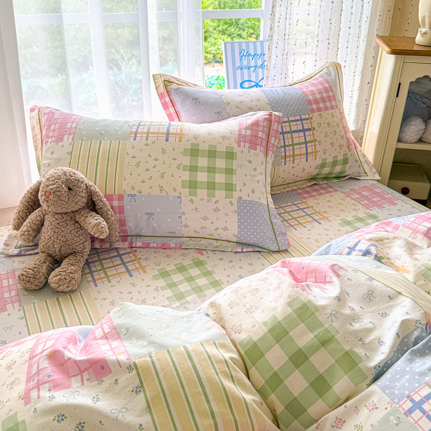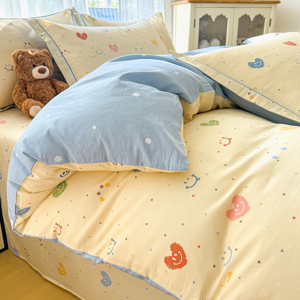 棉加牛奶绒三角针贝壳边四件套-系列一