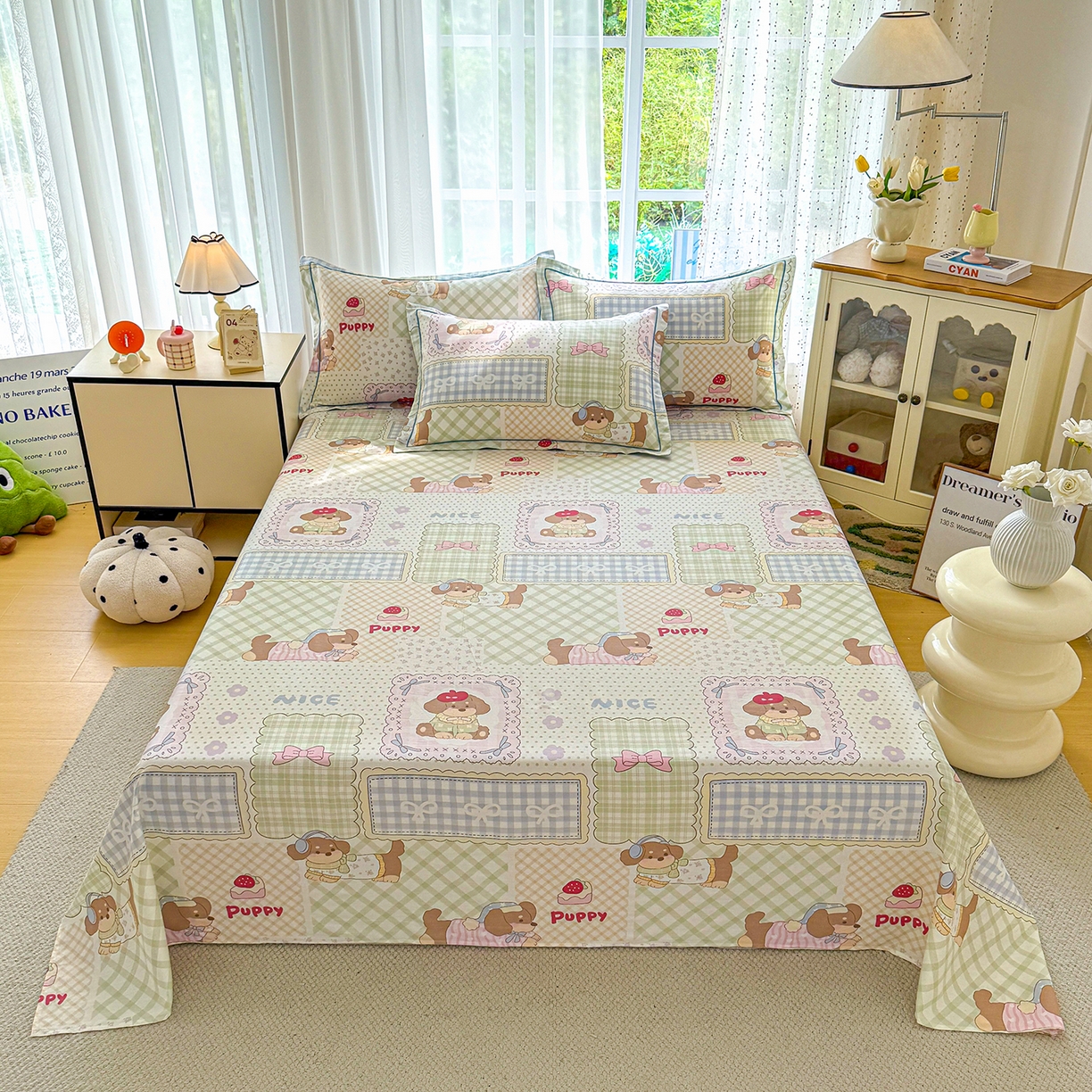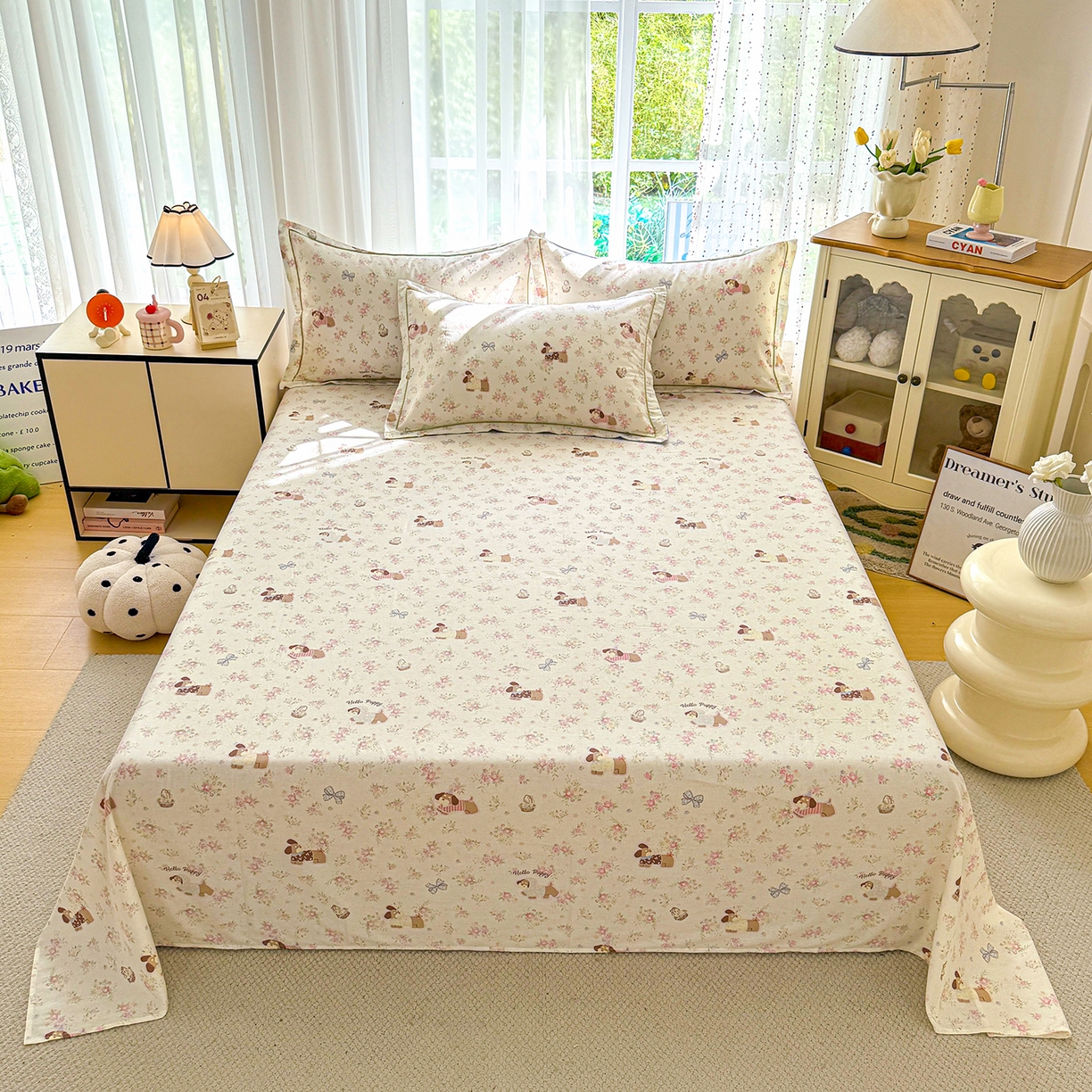 红粉佳人家纺 2025春夏新款喷气12868系列全棉纯棉单床单印花床单第二批 花田小狗