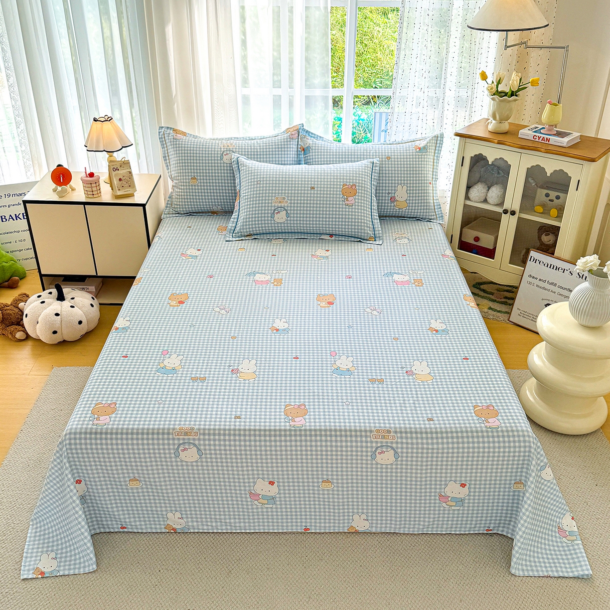 红粉佳人家纺 2025春夏新款喷气12868系列全棉纯棉单床单印花床单第二批 格子猫咪